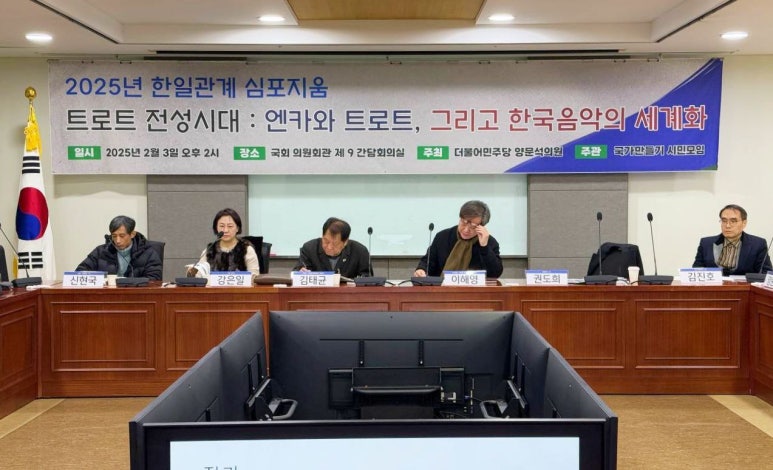 더불어민주당 양문석 의원이 주최하고, 이해영 한신대 교수이자 다극화포럼 이사장이 대표로 있는 ‘국가만들기 시민모임’이 주관하는 ‘2025년 한일관계 심포지움’이 열렸다. 이번 심포지움의 주제는 “트로트 전성시대: 엔카와 트로트, 그리고 한국음악의 세계화”‘였다. 심포지움에서는 “트로트는 우리의 전통가요”로 부루는 시도에 까끔한 경고를 보냈다.