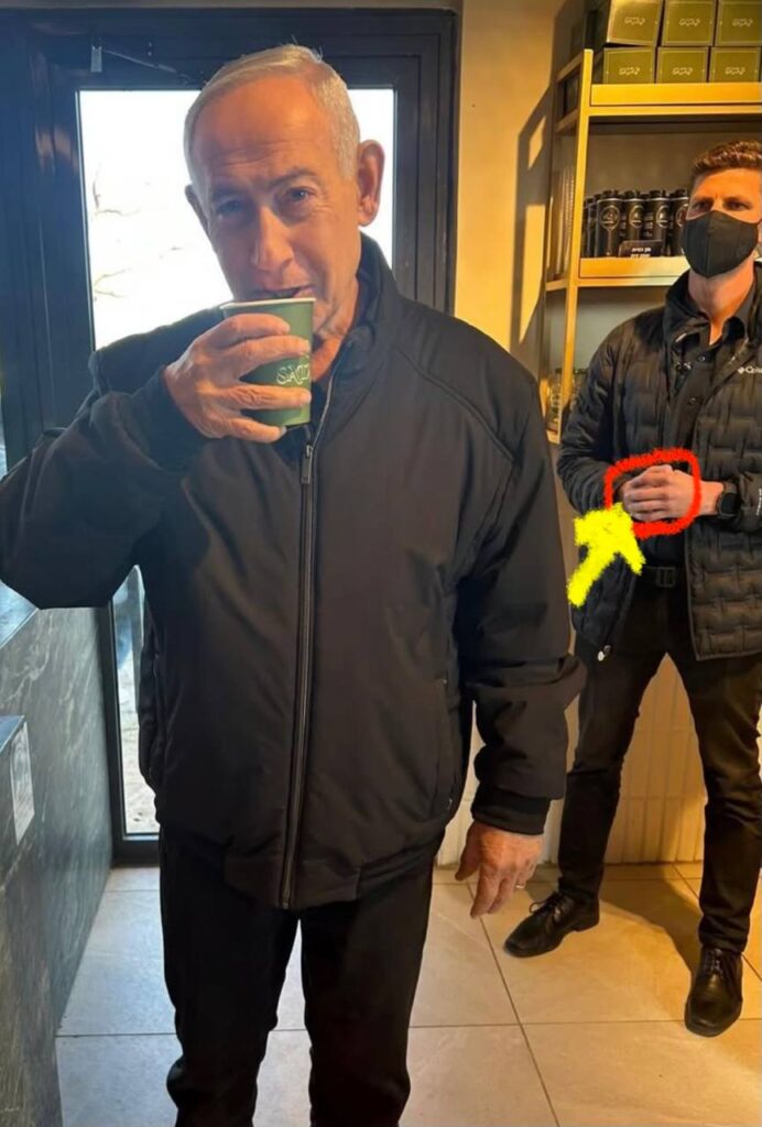 붉은색 원과 노란색 화살표의 뒷배경 인물(경호원 추정)의 손 부분을 보면, 명백한 해부학적 오류가 발견됩니다.