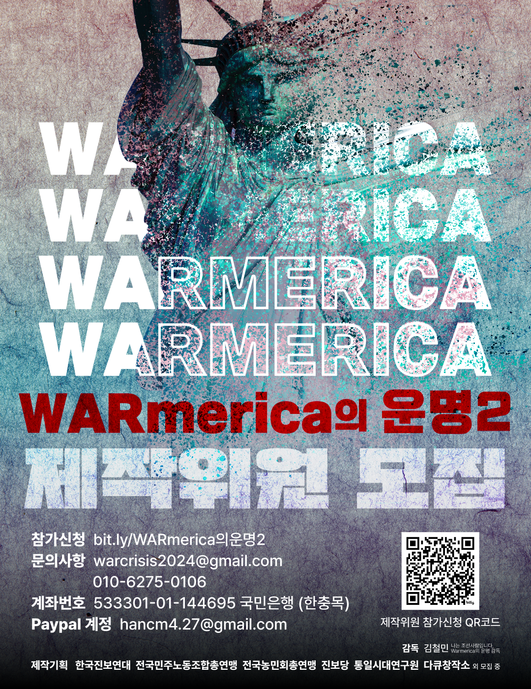 📍 이제 마지막 입니다. 엔딩크레딧에 올라갈 제작위원을 모집합니다 📍국민은행 한충목 533301-01-144695 📍 해외후원 Paypal 계정: hancm4.27@gmail.com 📍 문의 010-6275-0106 또는 warcrisis2024@gmail.com | |